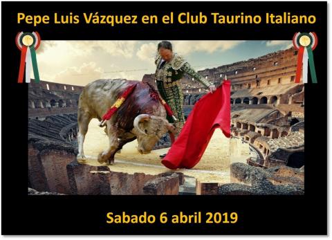 El próximo sábado 6 de abril el Club Taurino Italiano organizará un acto en honor del torero sevillano, Pepe Luis Vázquez, que tendrá lugar en Milán donde acudirán socios de toda Italia.
