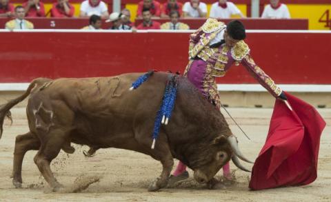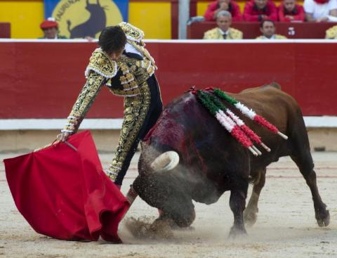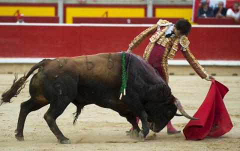 San Fermín (Pamplona). Novena de feria. Se lidiaron toros de Núñez del Cuvillo, bien presentados. El 1º, rebrincado y brutote; el 2º, humilla pero suelta la cara; el 3º, movilidad aunque protestón; el 4º, encastado y de buen juego; el 5º, manejable; el 6º, movilidad pero derrotón y sin entrega. Lleno en los tendidos.