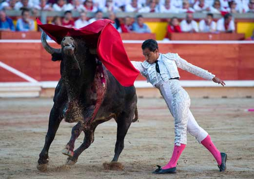 Birrioso broche final de la feria de San Fermín con unos toros de brava fachada y alma de buey con malas ideas. El último, Olivito, el toro que hirió de gravedad a varios corredores en el encierro, fue el más noble y de mayor recorrido en el tercio final, pero en modo alguno salvó de la quema a la corrida entera, sin fuerzas, mansa de solemnidad, descastada y muy deslucida.
