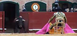 Lo que mejor hizo El Soro fue torear de capa: templarse con los vuelos y a puro huevo con el primer toro desde la salida, quitar por chicuelinas ajustadas y airosas cosidas con navarras, esperar al cuarto a porta gayola sentado en una silla de anea para incorporarse justo a tiempo de librar una larga afarolada, y volver a torear a compás con los vuelos en un par de verónicas anchísimas, preciosas. Los saludos con los brazos en cruz desde los medios –gesto reiterado, conmovedor- se acogieron con ovaciones memorables, y las dos faenas se jalearon muletazo a muletazo con pasión incontenible. Y el destino: los dos toros mejores de una bonita corrida de Juan Pedro Domecq entraron juntos en el lote de El Soro: nobilísimo el primero, más belicoso el cuarto, que lo atropelló y le descosió la taleguilla verde y oro a la altura de la ingle. No hubo agobios. La figura arqueada, huecos abiertos como pequeñas ventanas, El Soro no se dejó tropezar la muleta ni una sola baza, corrió la mano con gracia y encanto, pero también con la maestría o el poso que a los toreros aporta la edad.