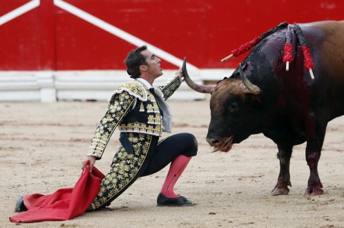 Duró la cosa un suspiro. Quién lo diría. Después de todo lo caminado, trotado, a eso de las ocho de la mañana y en medio de la expectación general. El “Soplón” de Fuente Ymbro salió al ruedo de la Misericordia con tanto ímpetu, con esas ganas de comerse el mundo y de puro ansioso, se estampó contra el burladero, el primerito, se partió un pitón por la cepa y se quedó más para allá que para acá. Remontó la coordinación pero era de decoro volver a corrales. Al sobrero del mismo hierro le recibió Juan José Padilla con una larga cambiada en el tercio y de rodillas y la terna al completo le puso banderillas, otra cosa fue cuando llegó el momento de ¡dejadme solo! y el toro se orientó de veras. No había manera de meterle mano y tener claro a la vez que ibas a salir indemne del trance. Abrevió Padilla. Y lo agradecimos. Tampoco fue faena larga la del cuarto, que era mirón y eso pesaba pero luego tomaba el engaño sin ímpetu ninguno y deslucidote. Anduvo Juan José por la cara del toro, justificándose, poco que rascar en su feria sanferminera.