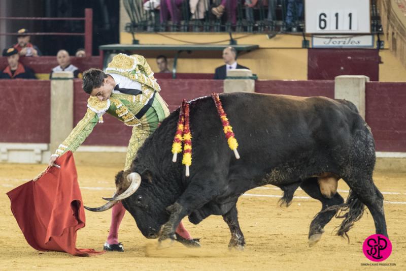 Como es ya costumbre el 12 de octubre, dos danzantes profesionales bailaron en un estradillo de sol la Jota de Borobio que subraya en Zaragoza la salida del sexto toro. El toro de la jota, que pesó 611 kilos y era tan grande como el que más pero menos agresivo que ofensivo. Se empleó en el caballo y, noble, consintió en la muleta, repitió templado en una tanda rehilada en redondo, y fue y vino en el toreo en corto y en línea, Cuando se paró falto de fuelle, no probó ni midió, y dejó a Ureña estar al hilo del pitón tranquilamente. Sin sufrir.